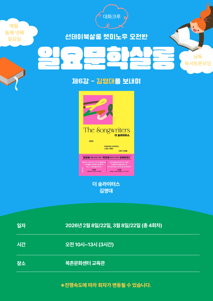 말로 달리는 모임, 대화크루 선데이북살롱 렛미노우 오전반 일요문학살롱 제6강은 <김영대를 보내며> 입니다.
