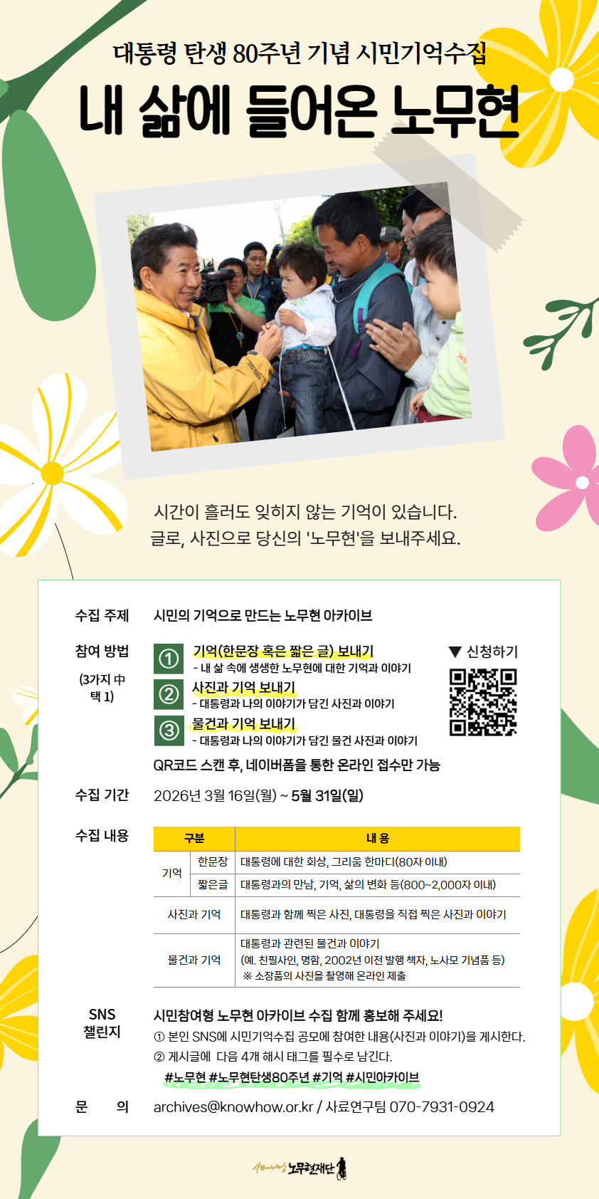 시민의 참여로 더욱 풍성해질 '노무현 아카이브'에 많은 관심과 참여를 바랍니다.